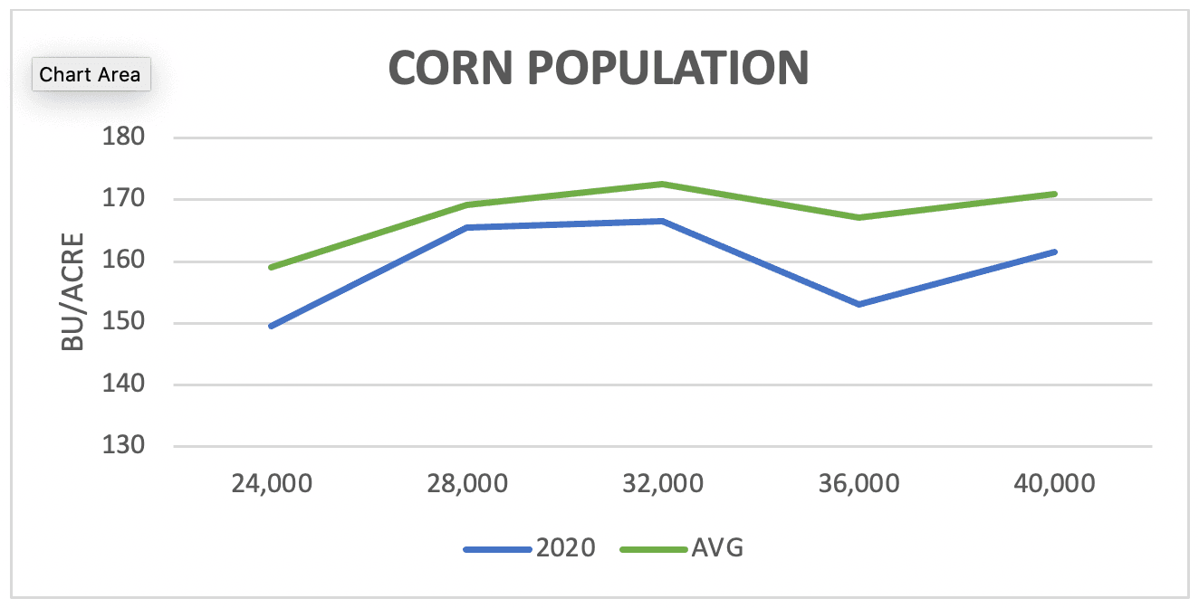 Below are the results from the soybean and corn population trials in Ole & Sven. We still saw an excellent correlation between our 2020 yield data and our 15-year average even with this year’s lower yields.