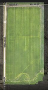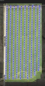 Mapping a field with a drone is a little different type of operation. When mapping, we program a flight pattern over a field through software running on our phone or tablet. When we have the flight pattern how we want it and initiate the mission, the drone will take off and fly a back-and–forth pattern across the field all by itself. While flying, the drone takes pictures every second or so to later be processed and “stitched” together into one high resolution map of the entire field.