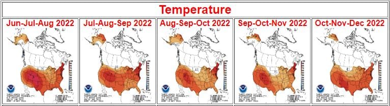 The gray area of the chart also gives an excellent visual representation of what could occur with above-average vs. below-average summer heat forecasts from NOAA.