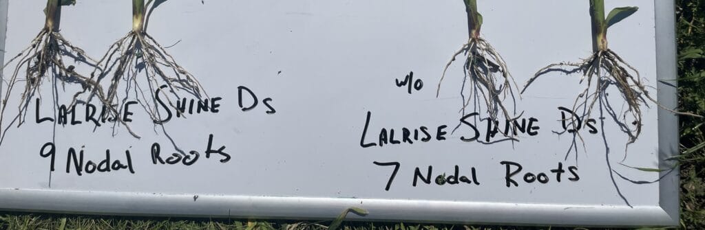 Left vs right: Example of how biologicals can affect corn nodal root development.
