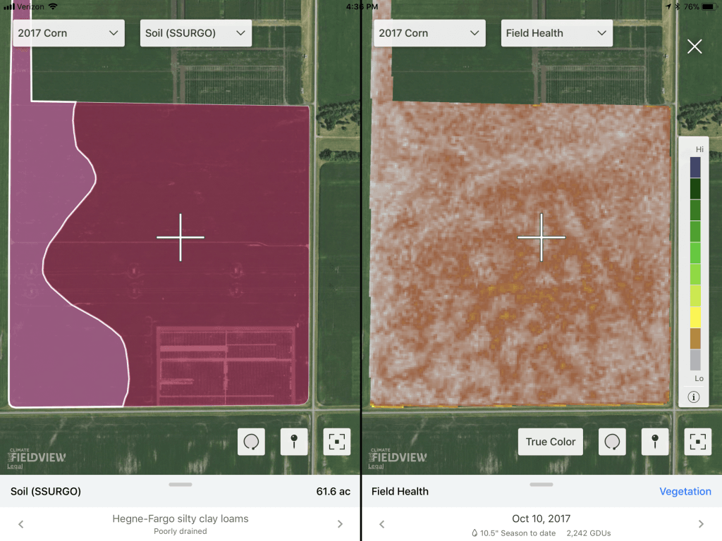 A bare soil map from either a satellite or drone provides a great view of the different soil textures of your fields. There are the SSUGO maps but I have found that in most areas they are not highly accurate to individual fields, so I would depend on the information from a drone or satellite image as more accurate.
